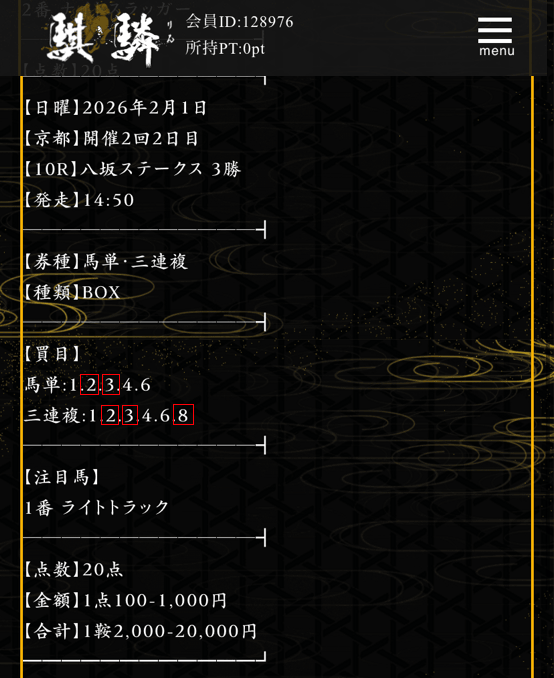 無料登録で厳選予想入手可能
