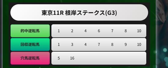 確かに根岸ステークス荒れたけどさ、1頭くらい絡んでもいいような、、、