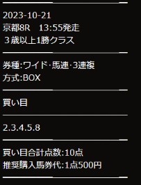 先週の土曜日8/27日曜日に無料情報だけで15万150円ゲットできたから今週の無料情報公開も楽しみにしてます! 今週も10万OVER的中したら貯まった配当で有料情報参加してみたいと思います!