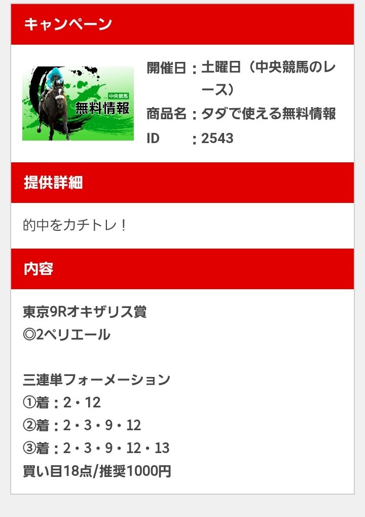 2レースとも本命がどんぴしゃで凄いと思った。良いサイトじゃないと得られない情報だと思う。