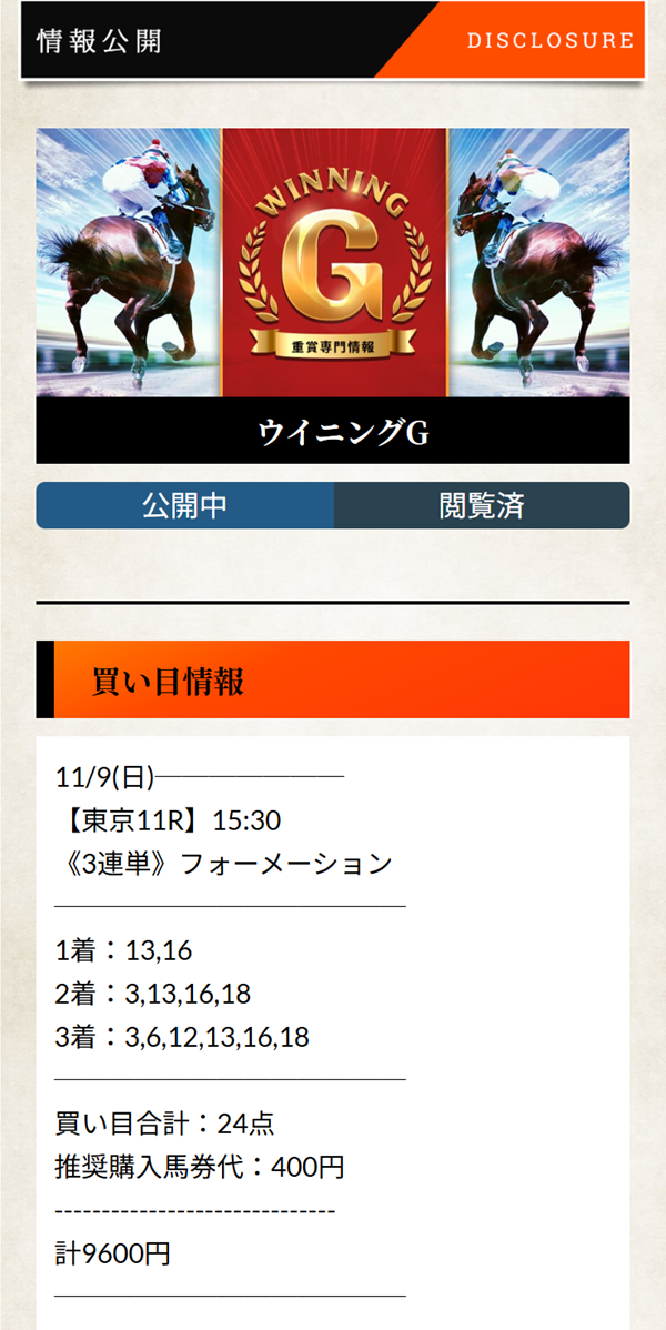 僕も初めて見かけてサイト見たらこんなのが! 万馬券当てる予想は認知度が違いますね、普段SNSとかやらないから情報力が足りない僕が悪いのかもですけどね^^;
