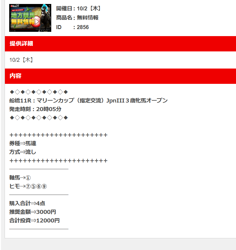 穴馬チャンネルさん無料情報でも出し惜しみしない穴馬情報ありがとうございます。 2着に入った10番人気お見事でした、3連複的中ありがとうございます。 配当も十分満足いく6万8700円ありがとうございました。 穴馬が馬券入ると感情では表せられない喜びがありました!